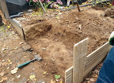 В первую очередь мы начали с подготовки надёжного основания для будущего памятника. Для этого мы раскопали необходимую часть места захоронения.